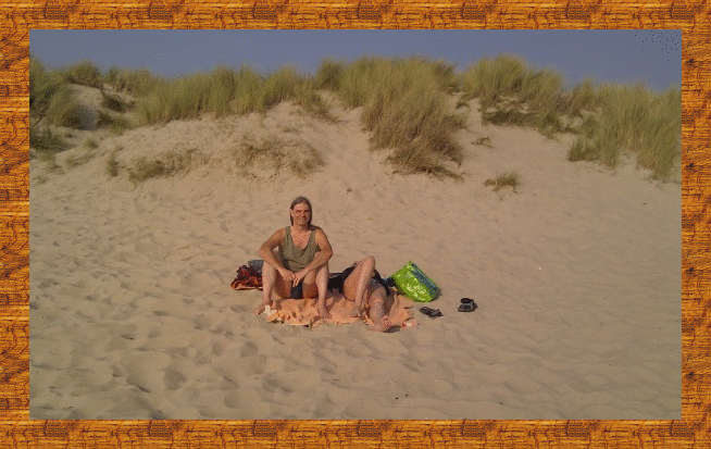 |  | Maandag wandelden we naar de Zwarte Polder. Op dit bankje bij 't Zwin waren we alweer bijna thuis. |